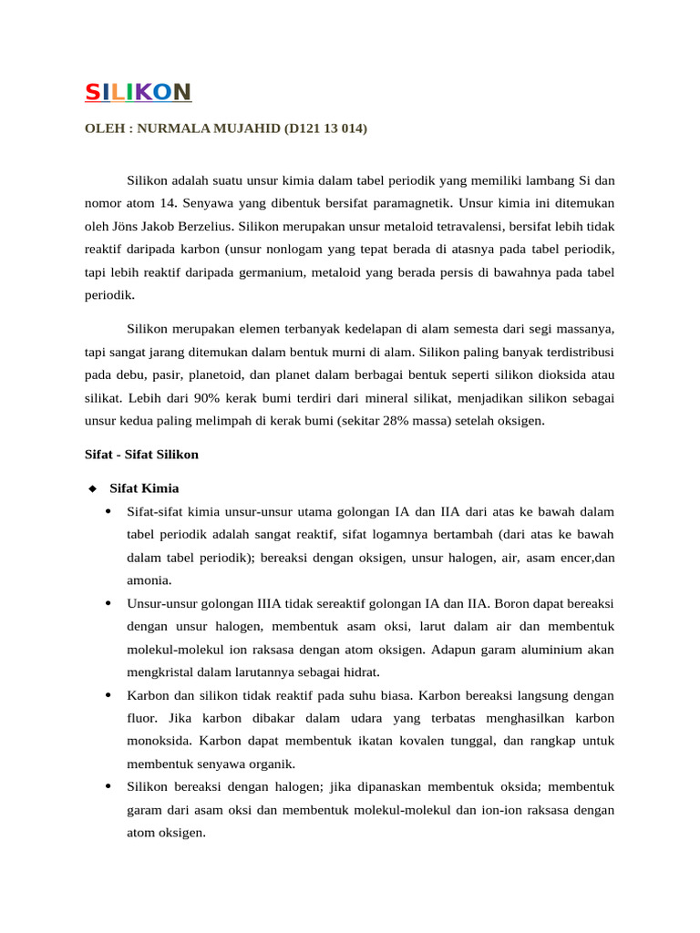 Penjelasan Tentang Sifat Unsur Silikon Sains Kimia